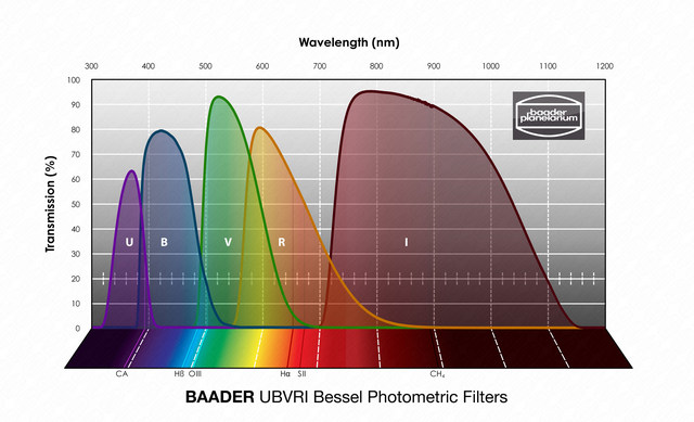 Photometric filters 36 mm x 2 mm Baader Bessel-UBVRI Bandpass Filter Set, suitable from f/15 to f/1.8