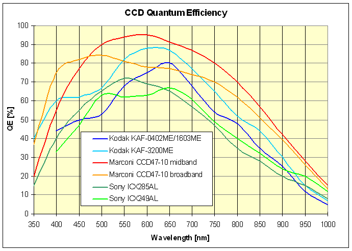 Kvantová účinnost některých populárních CCD čipů