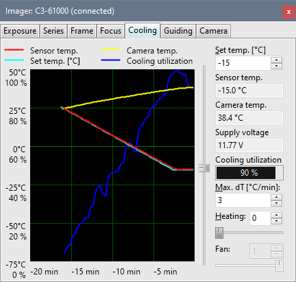 dodávaný program SIPS dovoluje řídit nejen kameru a filtrové kolo,