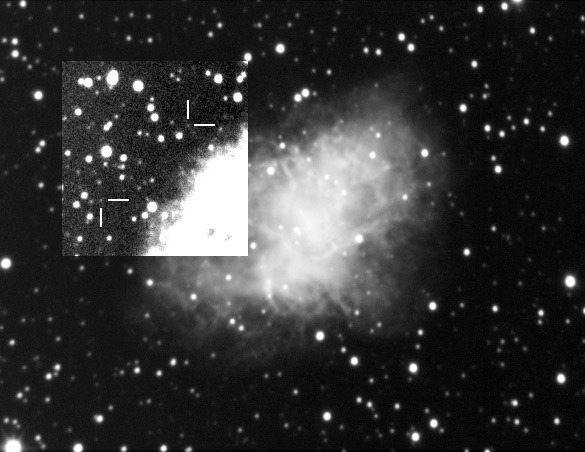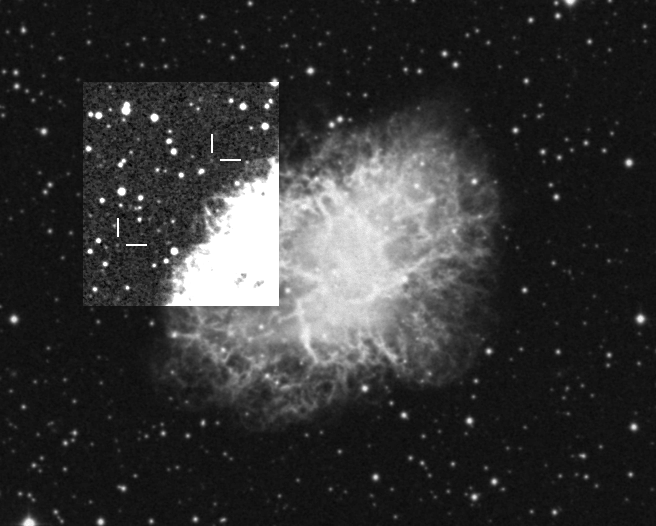 Unfiltered M1 “Crab Nebula” field captured by G2CCD-0400 (left) and DSS-2 red-light image (right)
