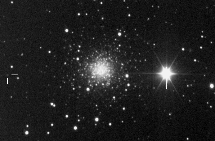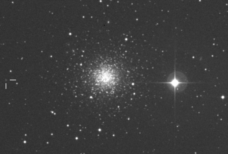 The filed of globular cluster NGC 2419 shows slightly lower reach—approx. 20.7m—compared to 21m of the DSS-2 red-light image. The star FWHM of the DSS-2 image is noticeably better due to better seeing on the Mt. Palomar.