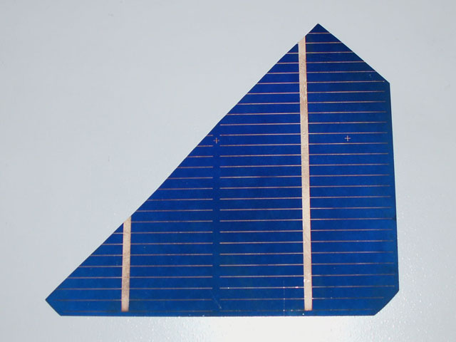 Fragment monokrystalického slunečního článku (vlevo) a jeho