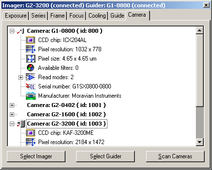 allow choosing of imaging camera and guiding camera independently