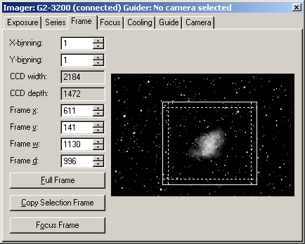 Frame tab of SIMS Camera control tool
