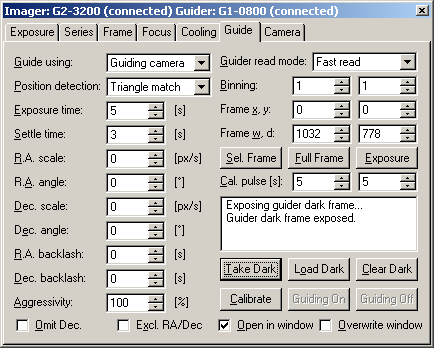 through the camera Autoguider port. Guide tab supports definition