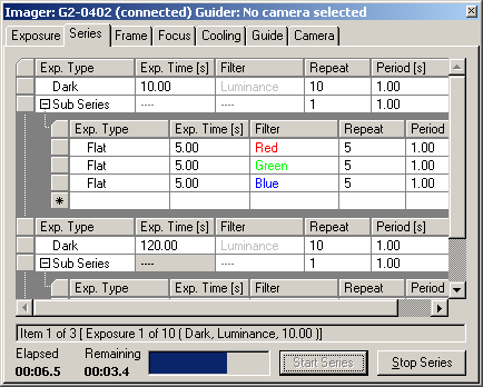 Ability of CCD Camera control tool to capture series of images
