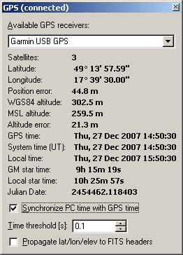 coordinates and precision time, obtained from the connected GPS