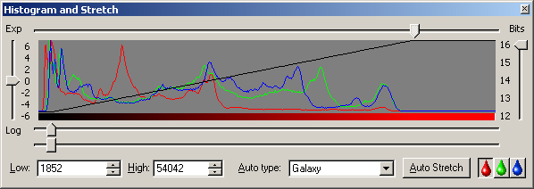 Histogram and Stretch tool shows individual histograms