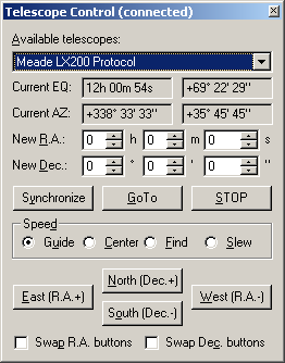 Newly introduced Guide tab allows guiding of telescope mount