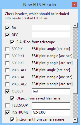 from the user, e.g. EXPTIME, FILTER or IMAGETYP. Values of these