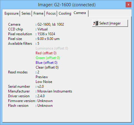 Camera tab of the Imaging Camera tool