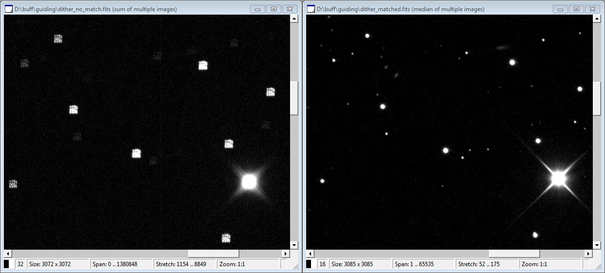 which demonstrate dithering offsets. When properly stacked with