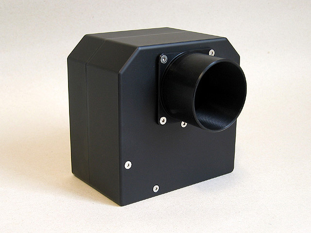 All parts (mechanical blade shutter, filter wheel with 5 positions for standard 1.25" filters, Peltier cooler with fans, camera and supply electronics) are inside the head.