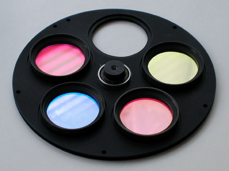 All reasons mentioned above contributed to the decision to include filter wheel directly into the G2CCD camera body. The filter wheel has 5 positions for standard 1.25" filters. G2CCD can be sold with pre-installed filters or the user can install filters according to his or her needs.