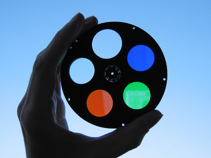 But it is also possible to combine the RGB filters with C (clear) filter to use all available QE offered by CCD chip for luminance images—handling proper color balance of astronomical images is more or less a question of personal preferences either way. The C filter has the same thickness as color RGB filters so it is not necessary to refocus the telescope when taking luminance image.