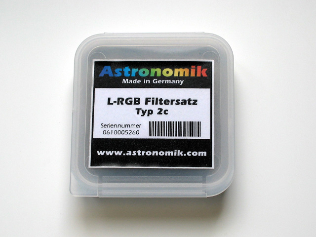 Astronomik L-RGB Type 2c filter set in the box (left) and in the G2CCD filter wheel (right)