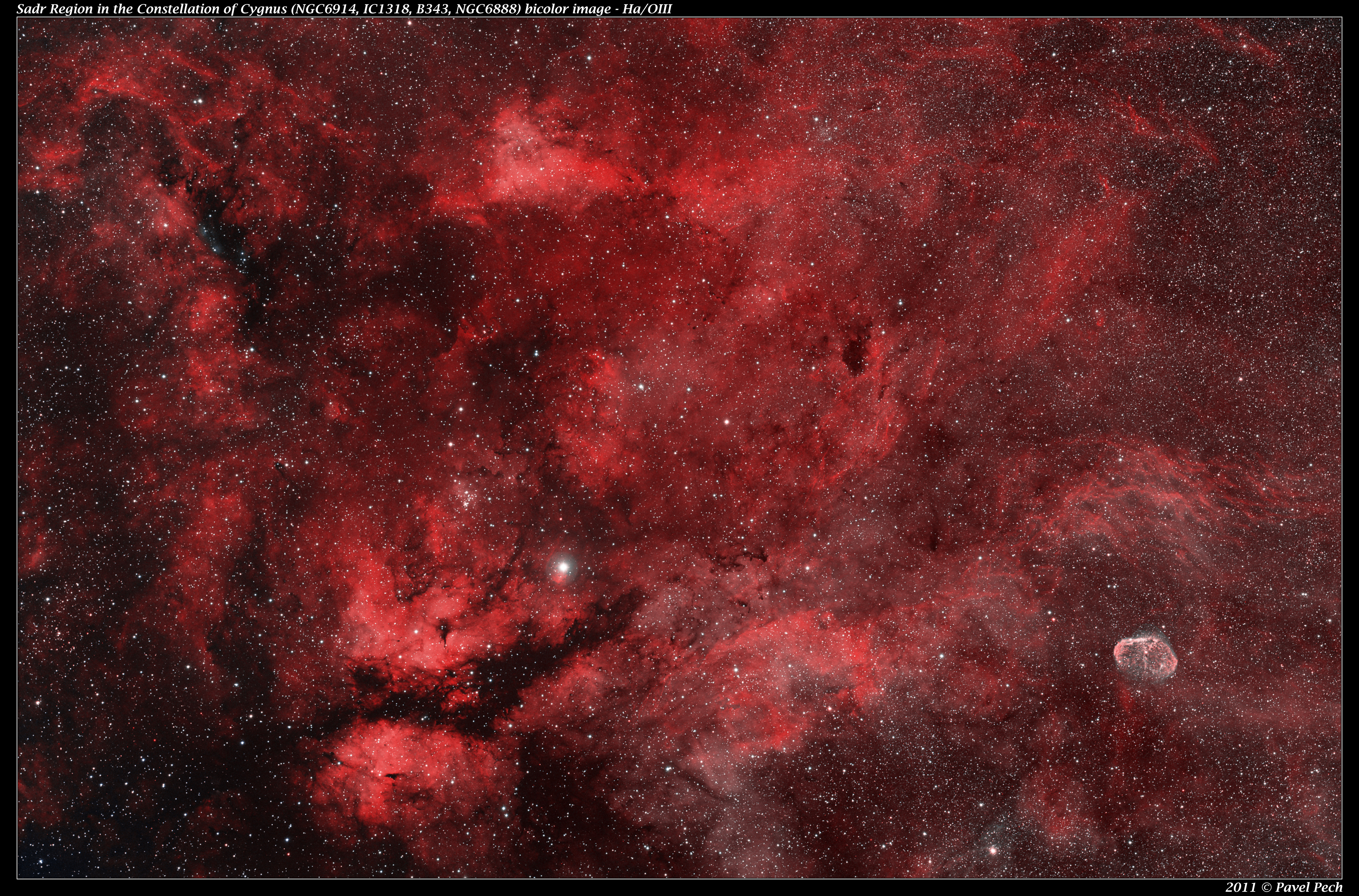 Oblast kolem hvězdy Sard v Labuti (bi-color