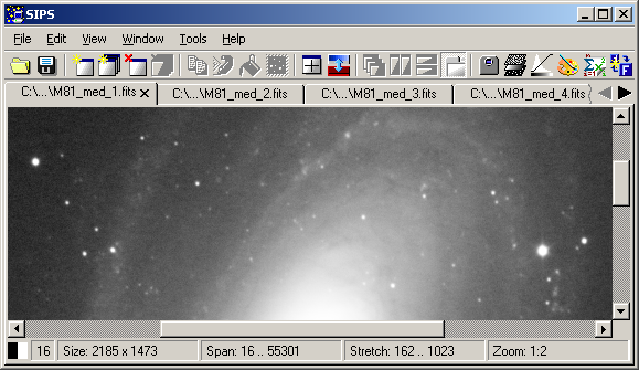 SIPS obsahuje sofistikovaný algoritmus pro vyhledávání hvězd